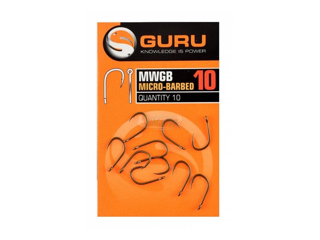 Charakteristika Háčiky GURU MWG bez protihrotu: Vynikajúci háčik s vlasovým upevnením nástrahy. Guru MWG vďaka unikátnemu zakriveniu tvaru a krátkemu ramienku umožňuje vysokú istotu a pevnosť záseku a tým minimalizuje stratu rýb.