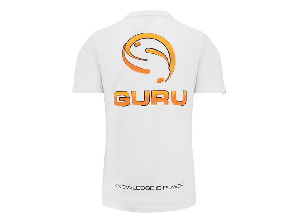 Ľahké tričko s krátkym rukávom, s malým oranžovým logom Guru vpredu a veľkým logom Guru v zadu, s nápisom "Knowledge Is Power".